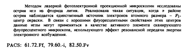 Методом лазерной фотоэлектронной проекционной микроскопии исследованы острия игл из фторида лития. Реализована такая ситуация, когда в районе острия наблюдается единственный источник электронов атомного размера Fj-центр окраски. В связи с хорошими флуоресцентными свойствами этих центров данные иглы могут применяться в качестве активного элемента сканирующего флуоресцентного микроскопа, использующего эффект резонансной передачи энергии электронного возбуждения. PACS: 61.72.Ff, 79.60.-i, 82.50.Fv