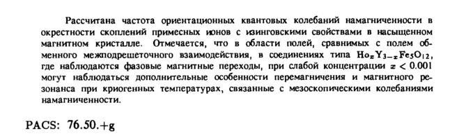 Рассчитана частота ориентационных квантовых колебаний намагниченности в окрестности скоплений примесных ионов с изинговскими свойствами в насыщенном магнитном кристалле. Отмечается, что в области полей, сравнимых с полем обменного межподрешеточного взаимодействия, в соединениях типа HoxY3-IFesO[2, где наблюдаются фазовые магнитные переходы, при слабой концентрации χ < 0.001 могут наблюдаться дополнительные особенности перемагничения и магнитного резонанса при криогенных температурах, связанные с мезоскопическими колебаниями намагниченности. PACS: 76.50.+g