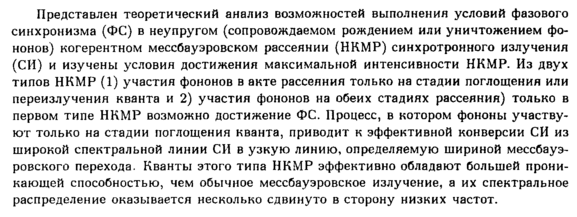 Представлен теоретический анализ возможностей выполнения условий фазового синхронизма (ФС) в неупругом (сопровождаемом рождением или уничтожением фо-нонов) когерентном мессбауэровском рассеянии (НКМР) синхротронного излучения (СИ) и изучены условия достижения максимальной интенсивности НКМР. Из двух типов НКМР (1) участия фононов в акте рассеяния только на стадии поглощения или переизлучения кванта и 2) участия фононов на обеих стадиях рассеяния) только в первом типе НКМР возможно достижение ФС. Процесс, в котором фононы участвуют только на стадии поглощения кванта, приводит к эффективной конверсии СИ из широкой спектральной линии СИ в узкую линию, определяемую шириной мессбауэ-ровского перехода. Кванты этого типа НКМР эффективно обладают большей проникающей способностью, чем обычное мессбауэровское излучение, а их спектральное распределение оказывается несколько сдвинуто в сторону низких частот.