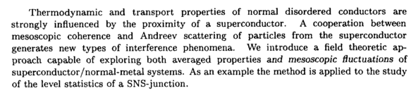 Thermodynamic and transport properties of normal disordered conductors are strongly influenced by the proximity of a superconductor. A cooperation between mesoscopic coherence and Andreev scattering of particles from the superconductor generates new types of interference phenomena. We introduce a field theoretic approach capable of exploring both averaged properties and mesoscopic fluctuations of superconductor/normal-metal systems. As an example the method is applied to the study of the level statistics of a SNS-junction.