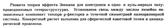 Развита теория эффекта Зеемана для электронов в однои нуль-мерных полупроводниковых гетероструктурах. Установлена связь между числом линейно независимых компонент тензора ^-факторов и точечной симметрией низкоразмерной системы. Конкретный расчет выполнен для сферической квантовой точки и цилиндрической проволоки.
