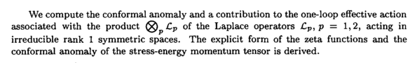 We compute the conformal anomaly and a contribution to the one-loop effective action associated with the product &)pCp of the Laplace operators Cp, ρ = 1,2, acting in irreducible rank 1 symmetric spaces. The explicit form of the zeta functions and the conformal anomaly of the stress-energy momentum tensor is derived.