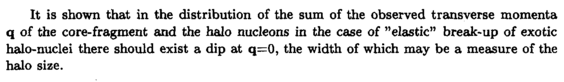 It is shown that in the distribution of the sum of the observed transverse momenta q of the core-fragment and the halo nucleons in the case of "elastic" break-up of exotic halo-nuclei there should exist a dip at q=0, the width of which may be a measure of the halo size.