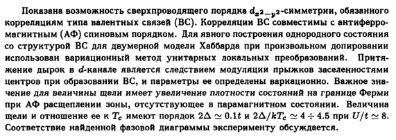 Показана возможность сверхпроводящего порядка <^з_у2-симметрии, обязанного корреляциям типа валентных связей (ВС). Корреляции ВС совместимы с антиферромагнитным (АФ) спиновым порядком. Для явного построения однородного состояния со структурой ВС для двумерной модели Хаббарда при произвольном допировании использован вариационный метод унитарных локальных преобразований. Притяжение дырок в d-канале является следствием модуляции прыжков заселенностями центров при образовании ВС, и параметры ее определены вариационно. Важное значение для величины щели имеет увеличение плотности состояний на границе Ферми при АФ расщеплении зоны, отсутствующее в парамагнитном состоянии. Величина щели и отношение ее к Тс имеют порядок 2Δ ~ O.lt и 2А/кТс ~ 4 -т4.5 при U/t ~ 8. Соответствие найденной фазовой диаграммы эксперименту обсуждается.